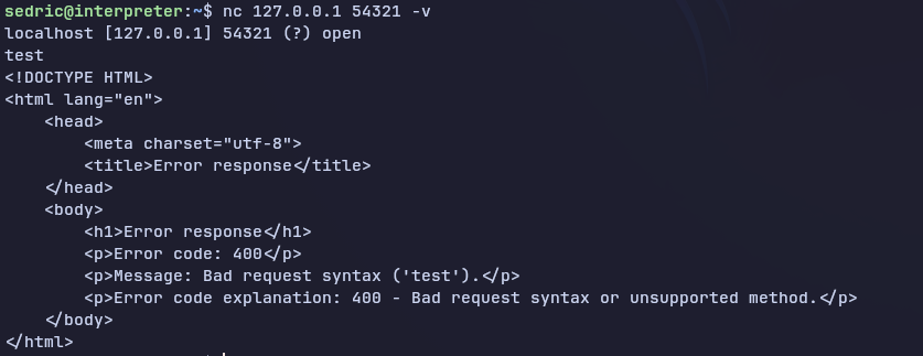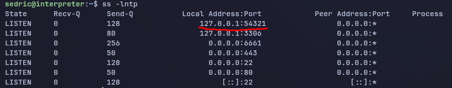 ssh -L 54321:127.0.0.1:54321 sedric@interpreter.htb